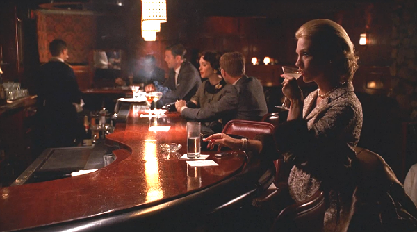 Like his luggage (no thanks to TWA), Don is lost. Squinting by the pool in the stark Los Angeles sunlight, Donald Draper grey suit uniform intact, he looks distinctly out of place. He chides Pete for treating it as vacation, and tells him to go out and make some connections pre-rocket fair, really make an impact. Once he’s changed into some new clothes, he sees a vision of Betty at the bar, breezing right past him.