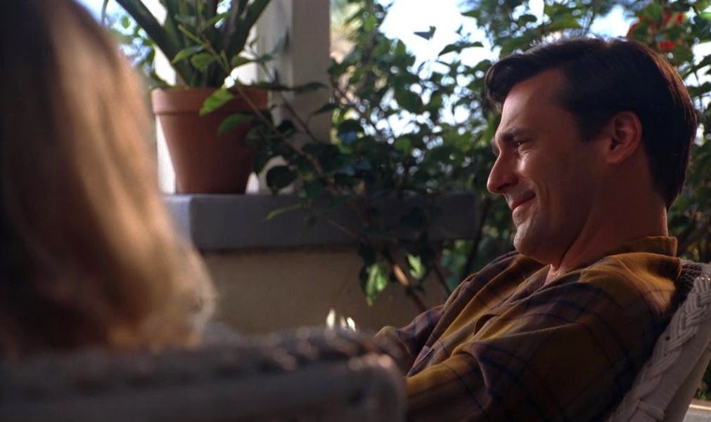 Post-shower and nap, Don and Anna chat on the porch. Anna is pretty much the only link to his past at this point, to who he really is. Don can be himself around her, let his guard down. He can say things he would never say to Betty. He can admit fault, he can talk about how he really feels without fear of tarnishing the image he’s so carefully curated.