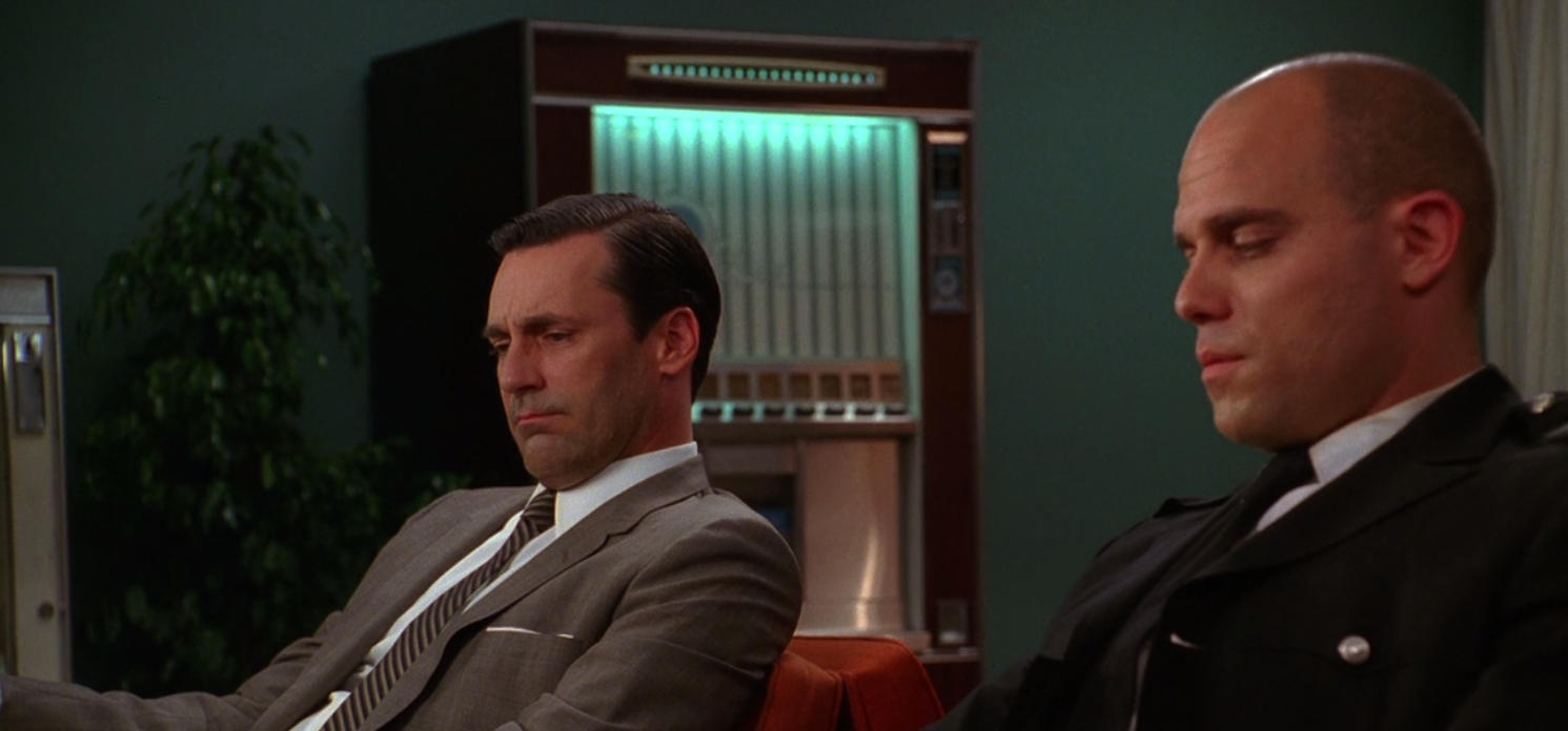 Having done a nice favour for the neighbour’s au pair re:dresspocalypse, Pete creeps on her expecting something in return. In a scene that mirrors that of Ladies’ Room in Season 1, when he creeped on Peggy’s doorstep latenight, his sauced frat boy faux charm is a little stale now. Woof, it’s super fucking uncomfortable.