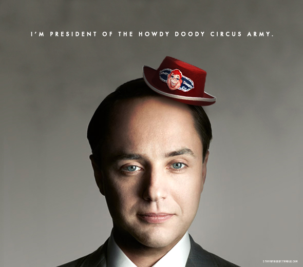 Megan is floundering with her auditions, and seeks out Don’s help to land a part in a Butler shoes commercial– he’s inherently reticent to throw her name in the ring, though he wasn’t bothered by the glaring nepotism of making her a copywriter at SCDP. And even though it sucks to tell her no, he has a point. You DO want to be someone’s discovery, not somebody’s wife. On top of that, her acting career also ain’t on his terms which he can’t quite grasp; that’s what happens when you help someone. They succeed and move on.