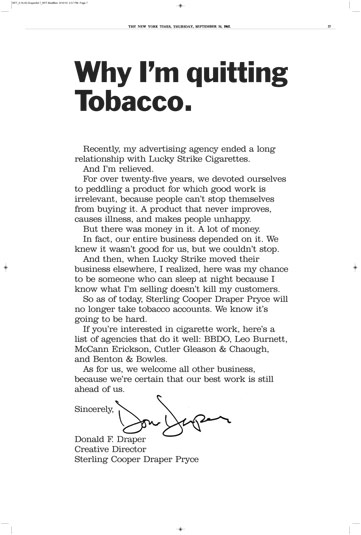 And hey, Don finally has a lightbulb moment in the series finale. His experience at the hippie retreat with Leonard reinforces Anna’s dead-on read of his unending sense of feeling alone interfering with his own happiness. Right before that he rings Peggy, “I never got to say goodbye to you”. If he could get out of his own way, things would be a lot easier. Ain’t that the fucking truth? And per usual, Don’s personal lowest points bring him great satisfaction professionally; that Coca-Cola hilltop ad and of course, the events of Shut the Door, Have a Seat. The back half of the final season shows the walls of 70s cynicism slowly closing in. McCann, corporate consolidation, and now fucking everything is owned by private equity. Or Unilever.